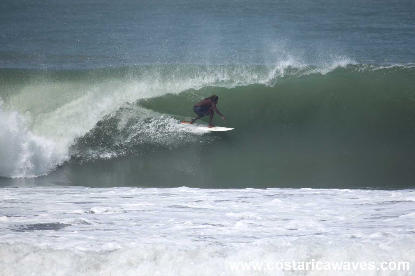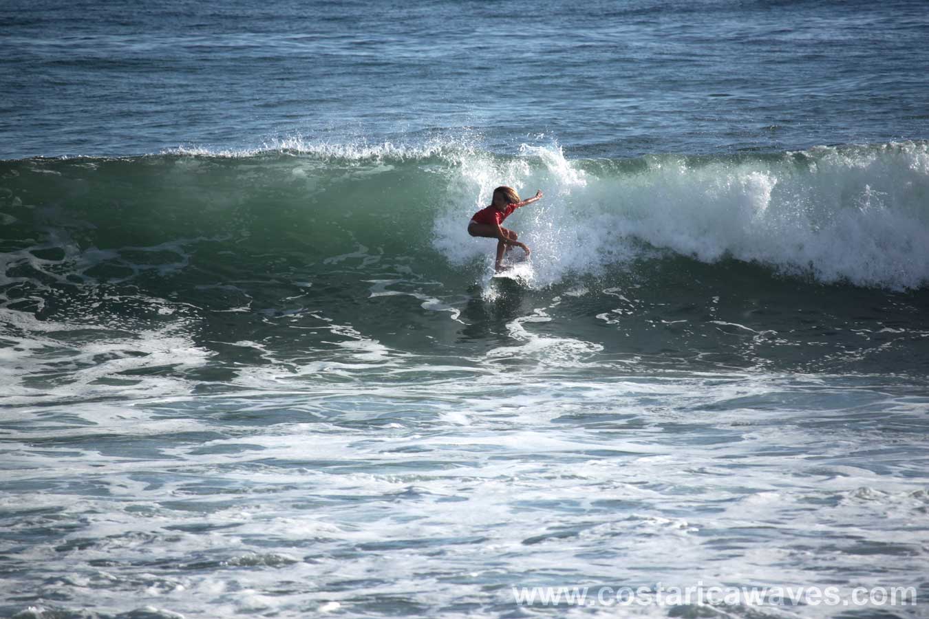 Mikela Castro, a member of the Costa Rican National Surf Team, rides the waves at her home break, Playa Hermosa.